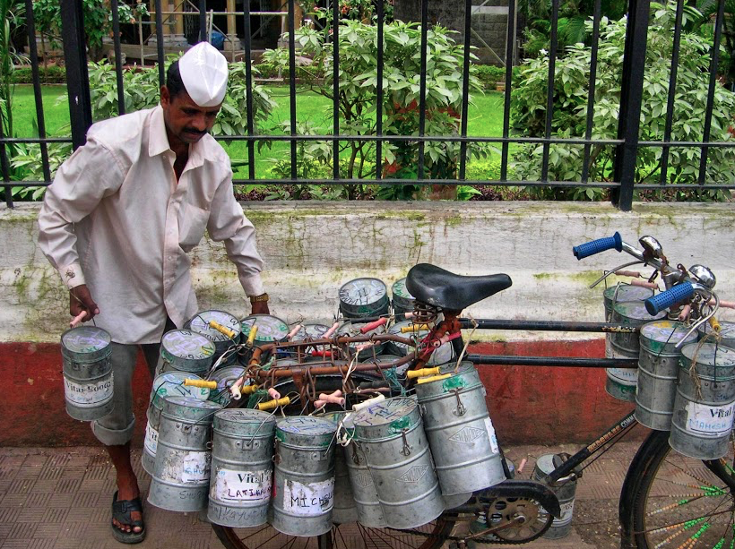 A dabbawala is a person in Mumbai who collects lunch boxes and delivers them to the workplaces of workers. Dabbawalas are famous throughout India and abroad for their efficient way of working. Their supply chain management is recognized across the world-- in fact, some of the most renowned national and international management schools, including Harvard, have studied their way of functioning. Around 200,000 lunch boxes are transported each day by nearly 5,000 dabbawalas across India. Dabbawalas are so popular that even Prince Charles invited them to his wedding. Dressed in white cotton kurta pajamas and a Gandhi cap, you can easily spot them in any major city in India.