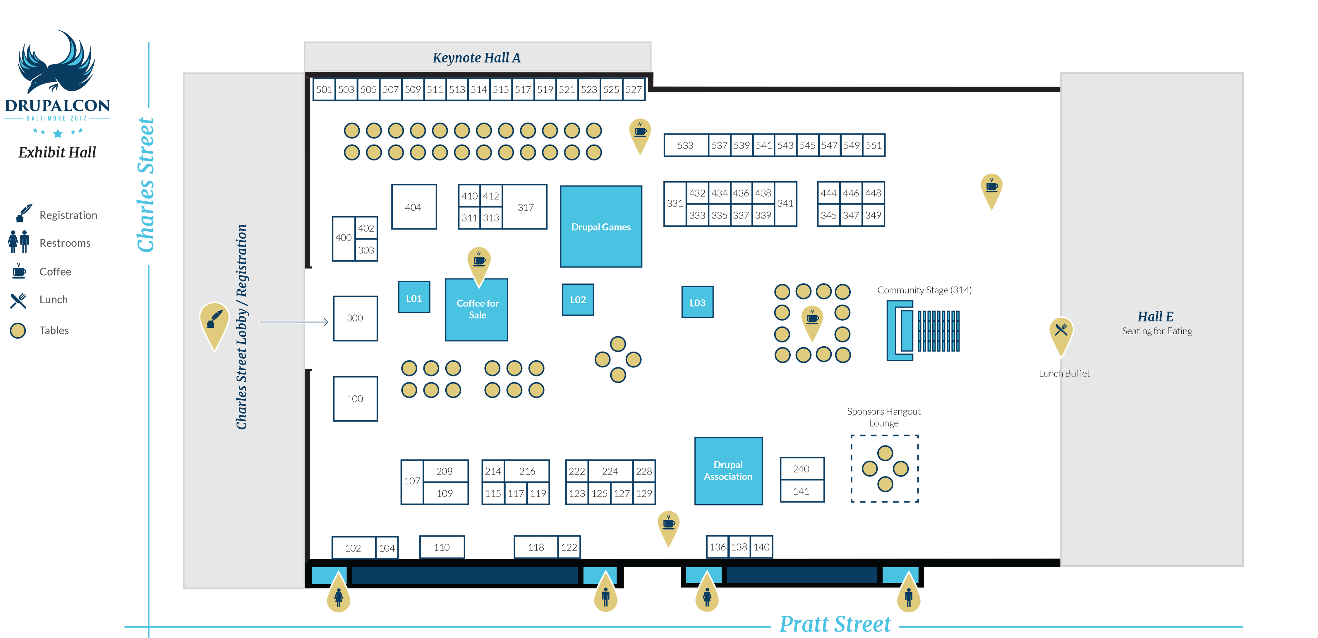 Be sure to stop by the exhibit hall to meet and learn from experts in every field imaginable! Our sponsors can help you improve your Drupal skills, show you how to extend your current websites, share what they have learned from working on some of the largest Drupal sites out there, and even why they might be suitable for your next place of employment! On top of interacting with our sponsors, the exhibit hall is where you can find the Drupal Community Stage, Drupal Association Community Booth, Sprint Mentors, games, fun activities, and an overall high energy social atmosphere! Oh, and did we mention COFFEE! Yes, lunch and coffee will be served in the exhibit hall Tuesday - Thursday. All in all, the exhibit hall is a must do!