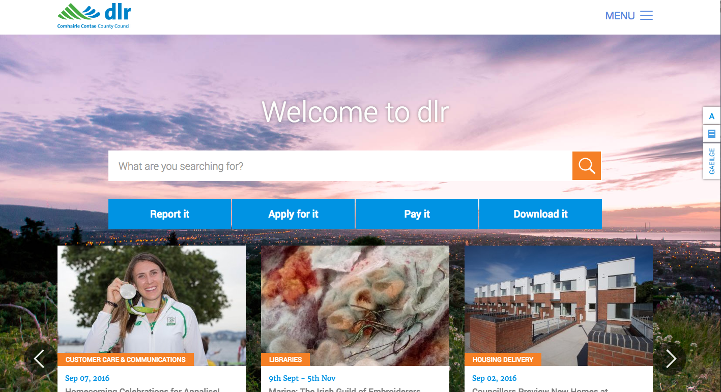 Dún Laoghaire-Rathdown County Council is the local authority responsible for delivering high quality services and infrastructure for its population, ranging from housing and libraries to local tourism and planning. The existing website presented several problems as it was built around County Council Departments rather than citizens, and used multiple platforms with inefficient content delivery. Our project team took a strategic approach to produce a user-centred and easily managed, public service website. The responsive new website better showcases the wide range of services and activities offered to DLR residents, visitors and businesses.